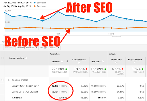 The post-and-pre outputs of the SEO give us an idea about the performance of the strategy optimization. It can be a penalty removal, sales boost, or local search victory, but no matter what, the right strategy guarantees measurable growth.